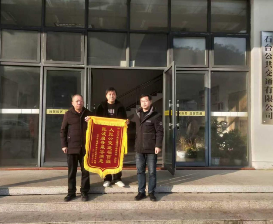 2025年12月11日上午,石台公共交通有限公司矶滩班线驾驶员收到了一份特殊的礼物——由矶滩村党支部李书记带领村支两委专程送来的一面锦旗。锦旗虽轻,情谊却重,它不仅代表了村民对公交人真挚的感谢,更凝聚着对其长期以来热情服务、敬业奉献的高度认可。