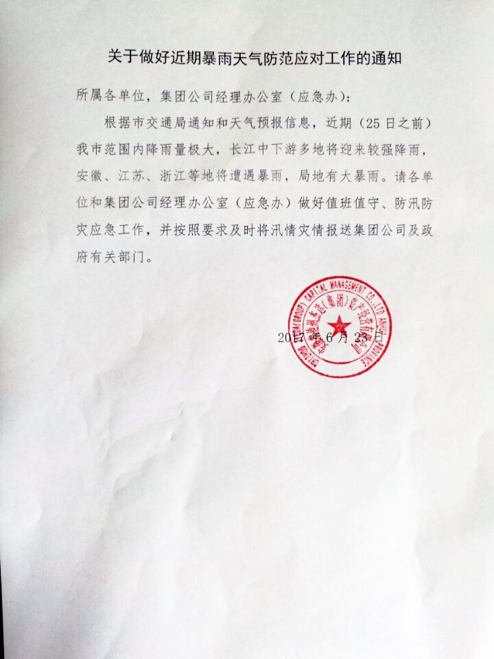 关于做好近期暴雨天气防范应对工作的通知