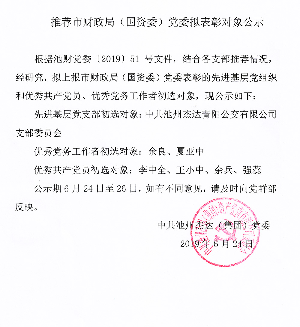 >> 通知公告 >> 推荐市财政局(国资委)党委拟表彰对象公示